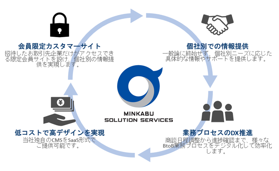 株式会社ミンカブソリューションサービシーズ(本社:東京都港区、代表取締役社長 兼COO:伴 将行、以下「当社」)は、この度、コーポレートサイト(https://minkabu-ss.co.jp/)に、当社が招待した金融機関各社のお客様を対象とした、会員限定カスタマーサイトをオープンしたことをお知らせいたします。