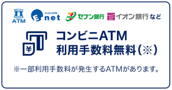 - 使えるATMが多数!コンビニATMで手数料無料も