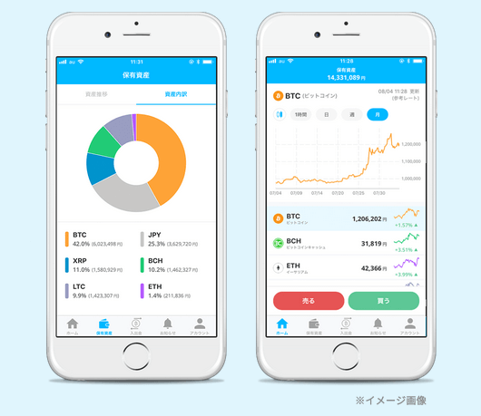 仮想通貨の取引は、スマートフォンで行われることが多くなっています。BITPOINTのアプリは視認性が良く、ログインしなくてもチャートを見ることができたり、自身のポジションや資産状況の確認が分かりやすくなっています。