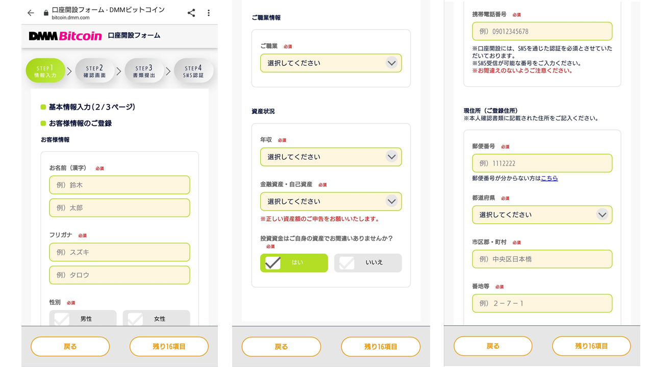 それでは、DMM Bitcoinの口座開設の具体的な手順を画像とともに説明していきます。