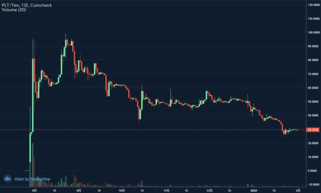直近ではビットコインなど暗号資産が全体的に下落した煽りを受け最高値の1/3程度まで価格は下落していますが、それでも販売価格の4.05円の7倍超です。